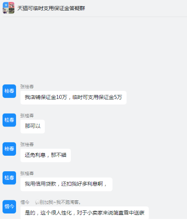 几张截图在电商群传播,内容是天猫发布了有关“可临时支用保证金问卷调研”,只要商家信用和经营情况都满足条件,最高可以预支一半保证金用于店铺的日常经营所需。