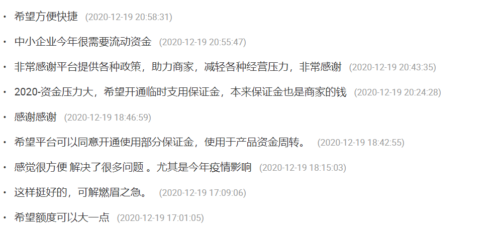因此,当天猫商家策略部的运营小二们发布预支保证金缓解资金紧张的调查问卷时,商家们都很支持。这意味着一大笔原本没法调用的资金被盘活了。