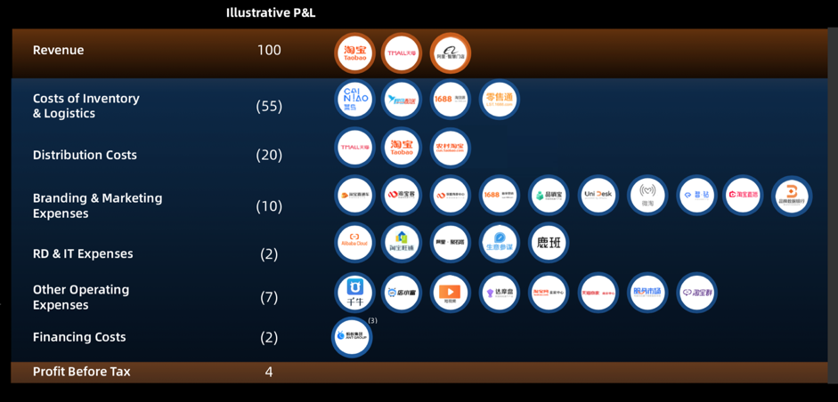 阿里巴巴从建立之初至今22年,几乎覆盖了商家交易的所有环节:云计算是电商最底层的建筑,蚂蚁集团和菜鸟则分别提供了电商外圈的金融支付和物流服务,淘宝和天猫不光是销售渠道,也被视作新品发布和新品牌营销的渠道。