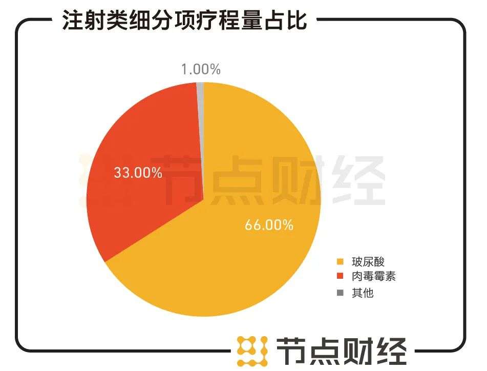 另据公开数据显示,目前,中国医美市场总规模已超过2000亿元,其中非手术类的轻医美项目最受市场青睐,而玻尿酸在注射类项目的占比接近七成。