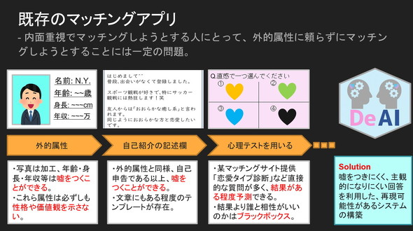 同队的其他成员表示,“价值观这种东西,很多人可能自己也说不怎么上来,因此可能存在有意无意的撒谎行为,如果是这样的话,匹配效果就会非常不理想”。