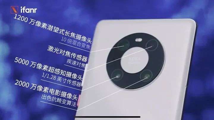在 Mate 40 系列上,同心圆的对称美学又得到了升级,Mate 40 系列将原本紧密结合的结合在一起的摄像头拆开散布在圆环的四个角落。